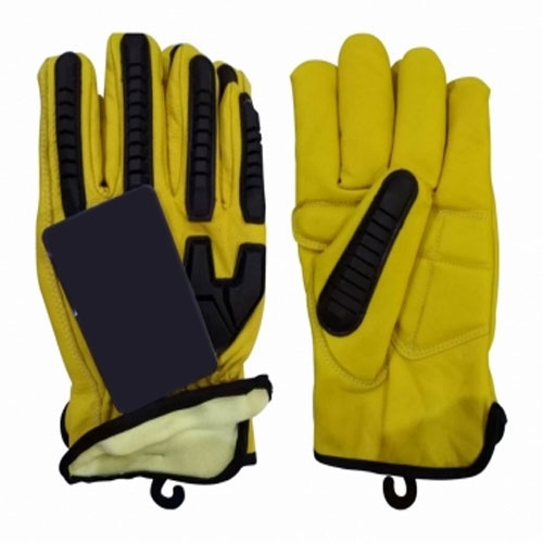 Yellow Dyed Superior Goatskin Leather , Black Protector On Back , Anti Vibration Gel Pading On Palm Side , With Cut Resistance Level 3,4,5 , Black Binding On the Cuff Side , KeyStone Thumb Style , Stiched With Kevlar Thread Size : S, M, L, XL Colour : Black, Yellow